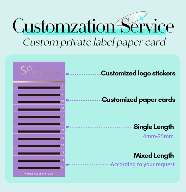 【Kualitas ikal yang tidak berubah】 bulu mata palsu memberikan standar pasar J, B, C, CC, D, DD, L, dan ikal berbentuk M. Speyelash telah mengembangkan teknologi berpemilik yang memungkinkan bulu mata kipas mudah tetap melengkung bahkan pada suhu tinggi, memastikan daya tahan lama dan hasil yang indah. Curling dapat bertahan lebih dari setahun, memberikan pelanggan dengan hasil yang konsisten dan konsisten.
